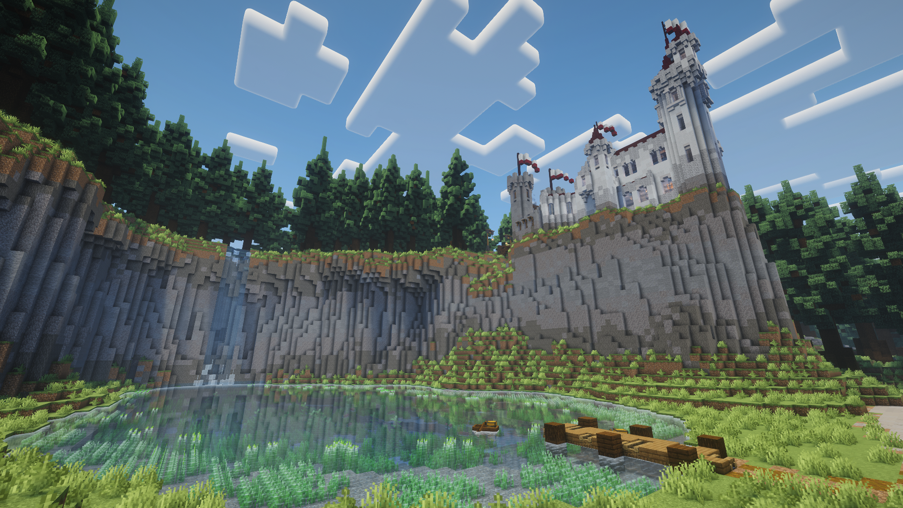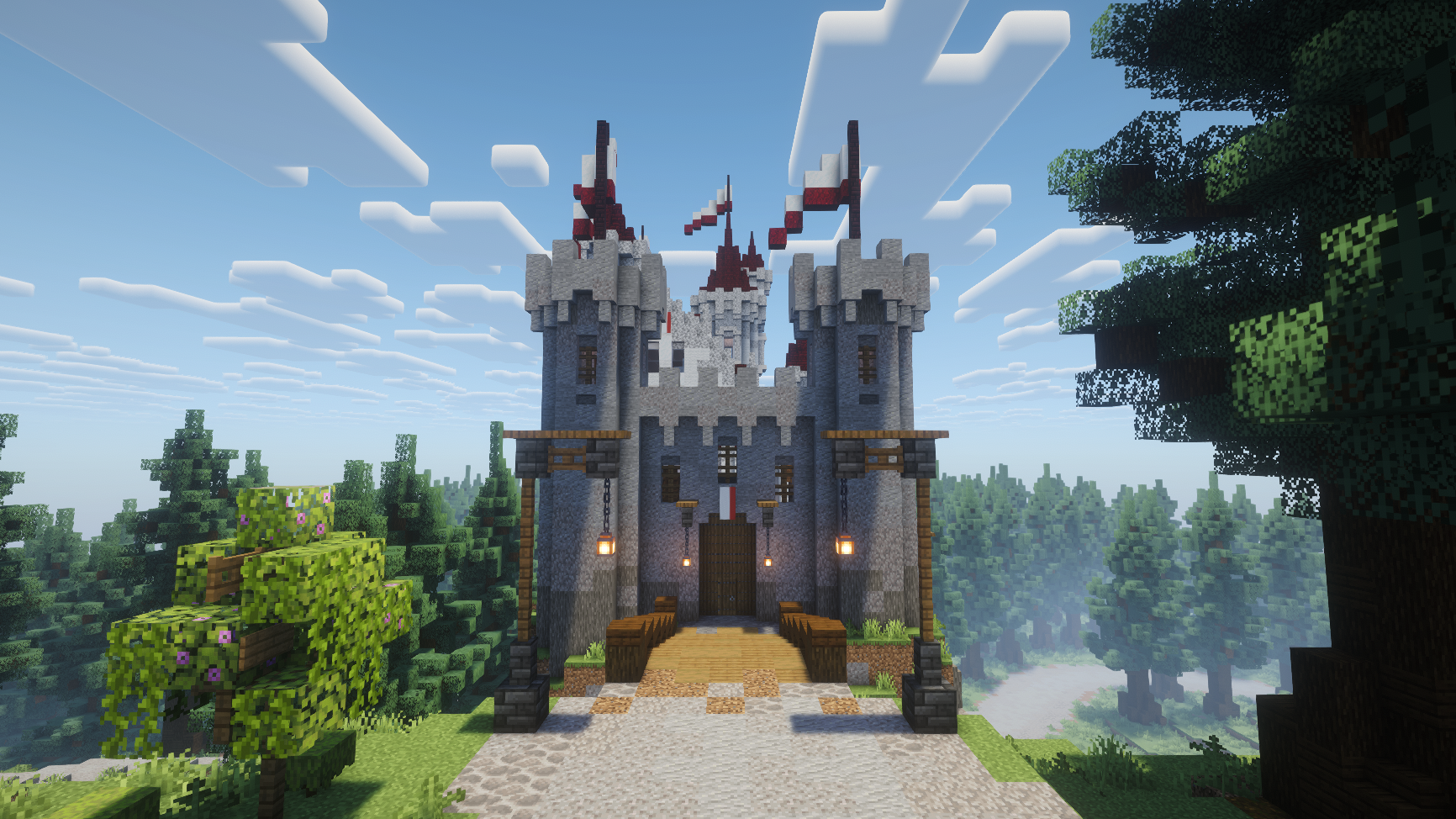 A small white diorite castle in the middle of a huge custom spruce forest.