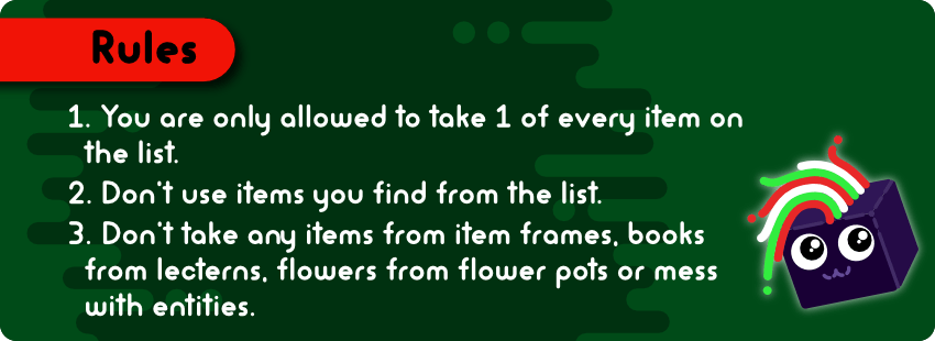 2. Do not take items from item frames, books from lecterns or mess with entities.