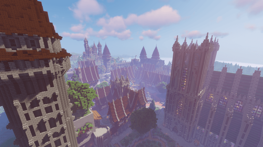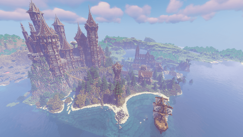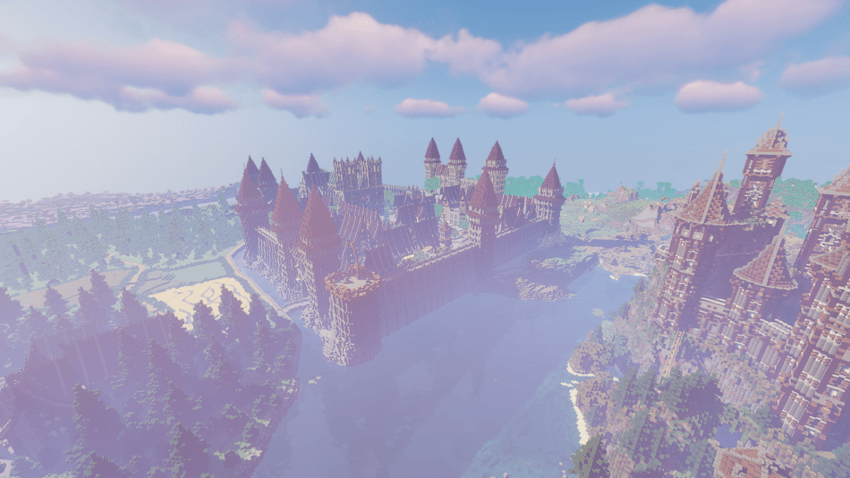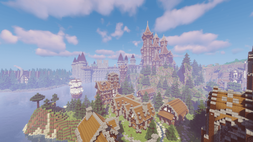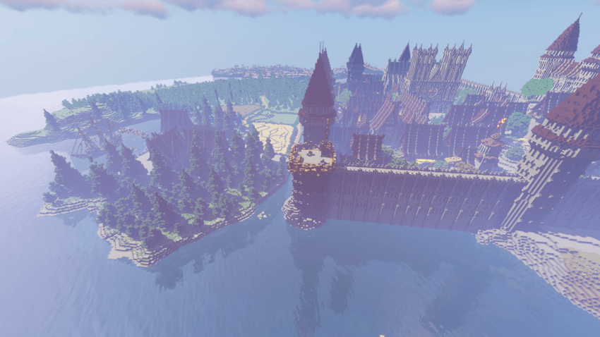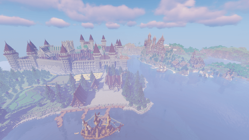 The other area is a large castle with a village at its base. It's decorated and themed, ready for players to begin their adventure without any problems.