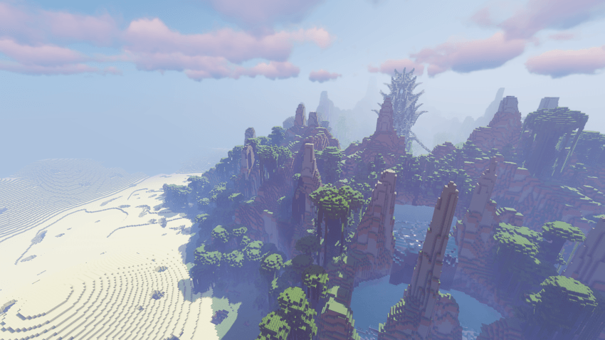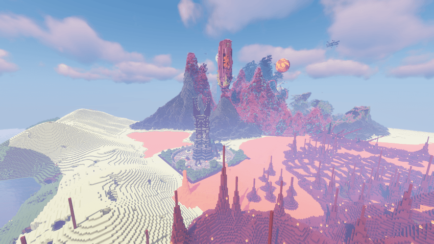 Moon Fantasy Space is a large, terraformed map with modified biomes and structures designed for a great survival experience.