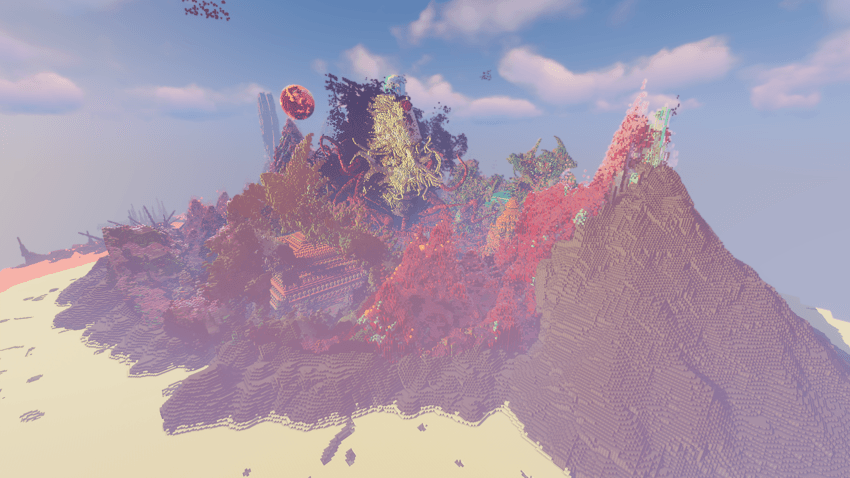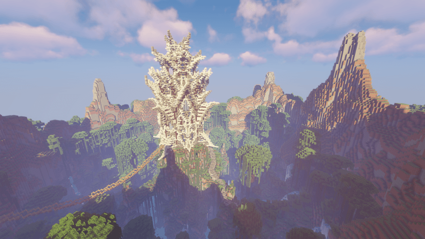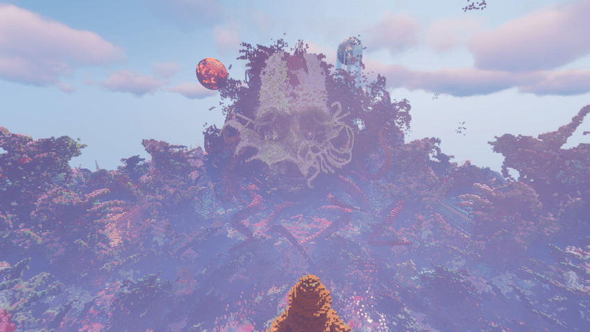 The entire terrain is based on the End, featuring giant structures and creatures native to the biome.