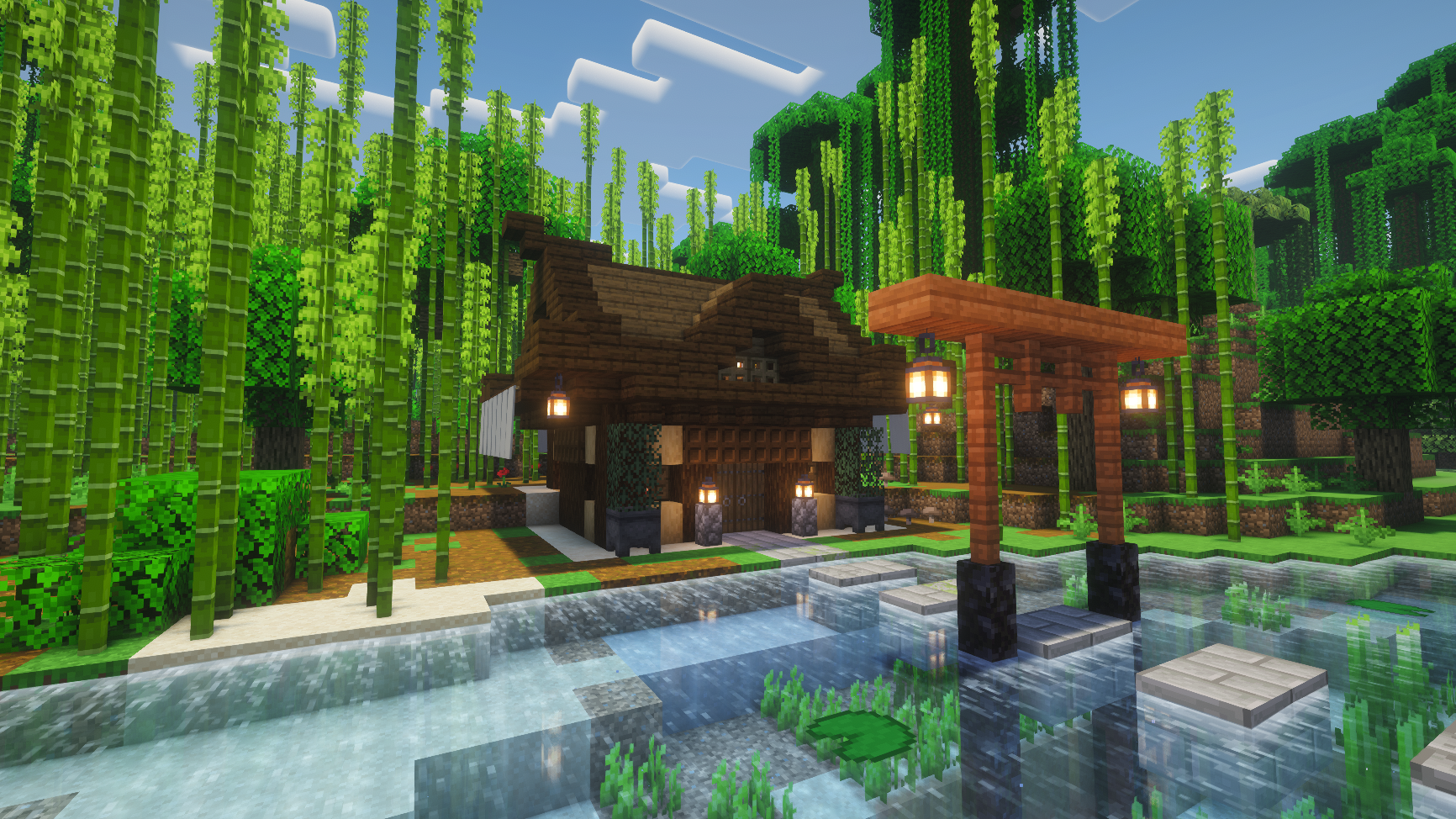 A small Japanese house built in a bamboo jungle biome.